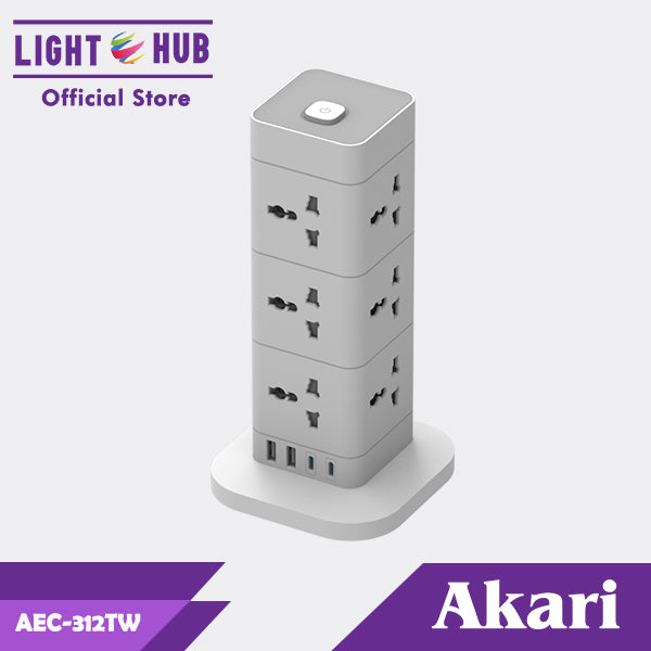 The Akari Tower Extension Cord is a space-saving vertical outlet solution equipped with overload protection for safer use in home or office setups. Designed for convenience and efficiency, it supports multiple devices with secure, covered outlets.